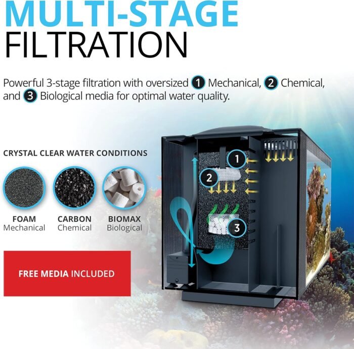 • Powerful 3-stage filtration with oversized mechanical, chemical, and biological Fluval filter media