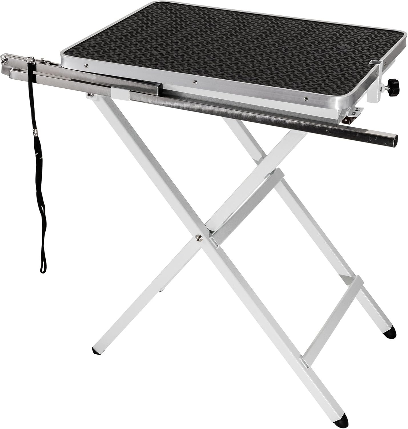 - Adjustable grooming arm with noose for convenient grooming