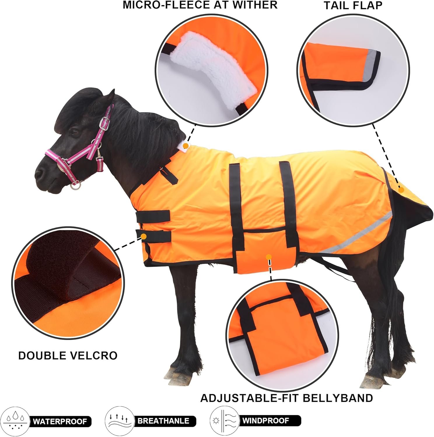 Foal/Mini Horse Size 30″-48″ Waterproof & Breathable 300 Denier Winter Turnout Blanket with 150g Polyfill Orange Medium