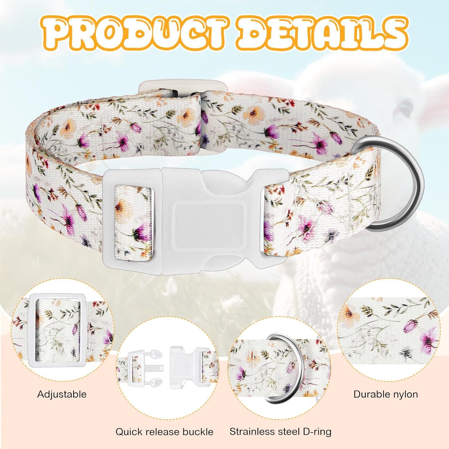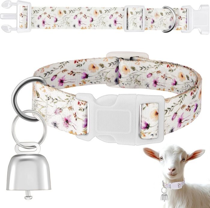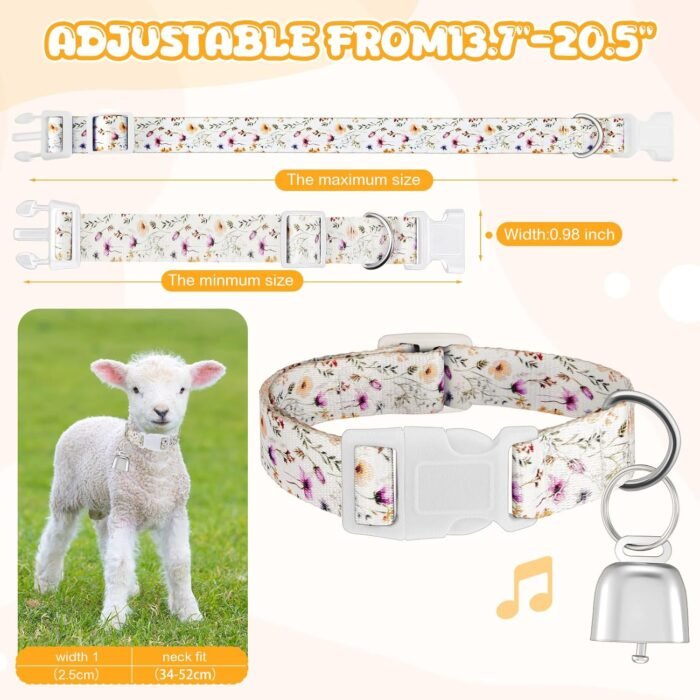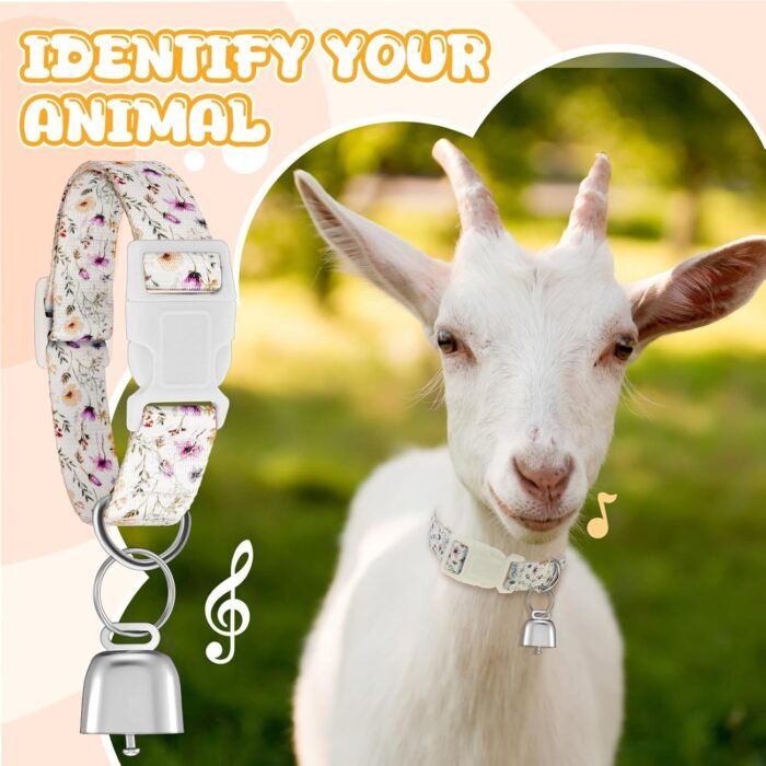 Home Small Animals Goat Collars with Bells, Sheep Grazing Copper Bells and Adjustable Nylon Collar Set Loud Bronze Bell for Summer Small Farm Animal Sheep Cow Dog Accessories(Wildflower)