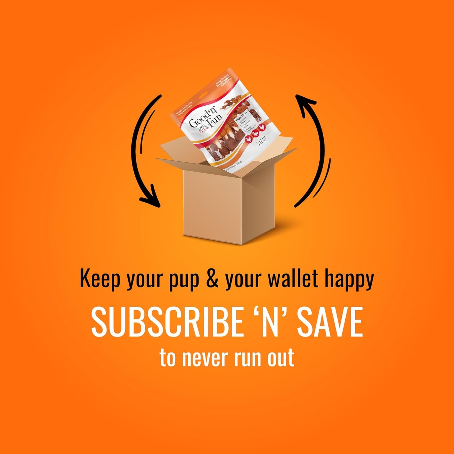 Good ‘n’ Fun brand offers a savory smorgasbord of flavors that dogs love most. These delicious chew treats are made from the finest ingredients, including long-lasting beef hide and premium chicken, to create truly delightful, long-lasting treats your dog will love. Good ‘n’ Fun Triple Flavor Rolls contain a savory combination of three flavors that dogs love, made from beef hide with delicious artificial pork flavor, then wrapped with premium chicken.