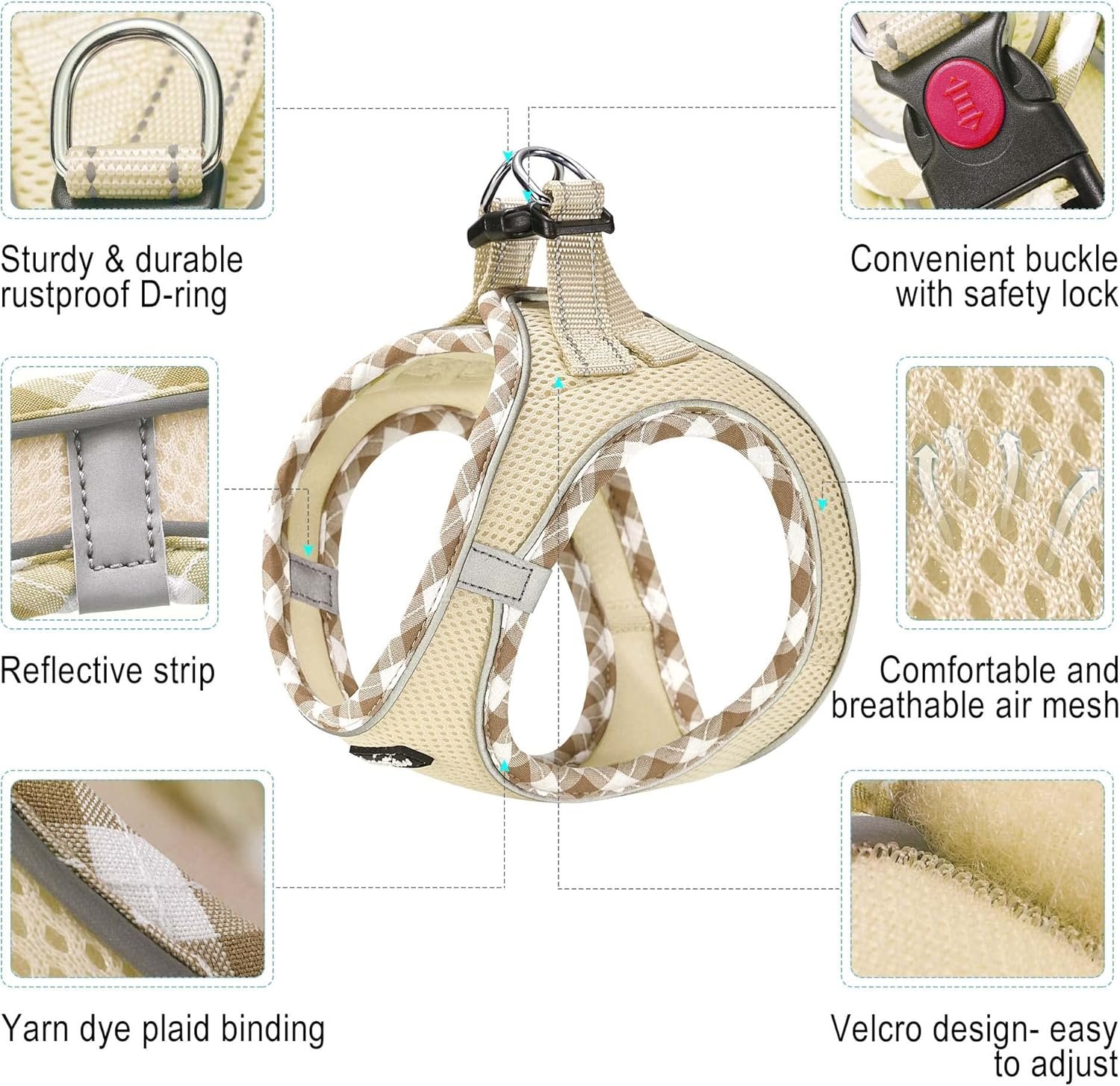 - Double D Ring: Strong and secure for attaching the leash