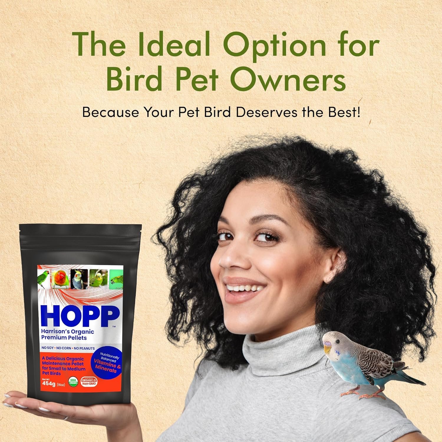 Harrison’s Bird Foods, particularly their HOPP formula, is specially formulated to meet the nutritional needs of adult birds, providing balanced, high-quality nutrition without compromising on organic integrity. Unlike other brands that may rely on alfalfa-based pellets originally designed for mammals, HOPP is crafted exclusively for avian health, making it the smart choice for bird owners seeking quality, affordability, and a certified organic balanced diet truly made for birds.