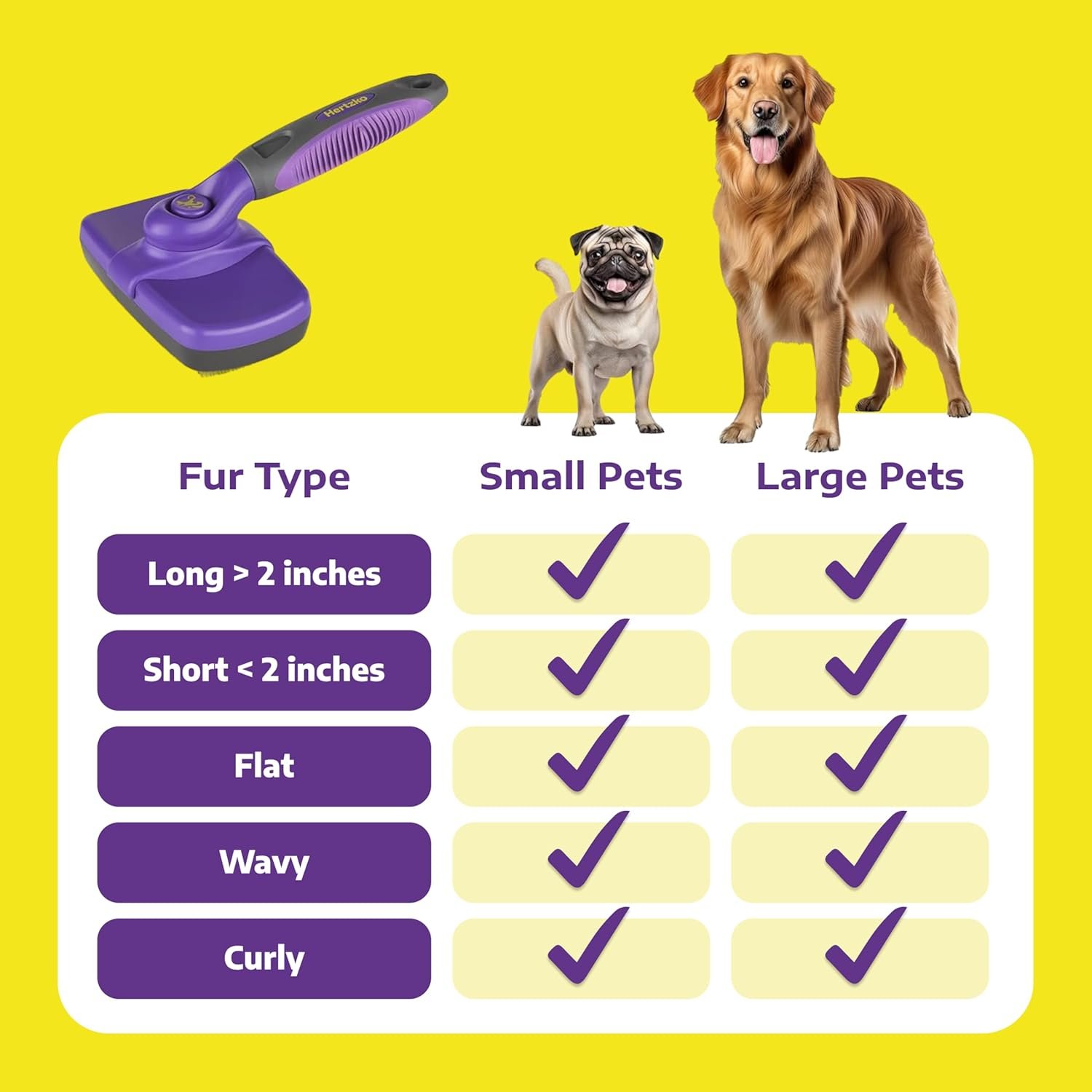 Hertzko Self Cleaning Slicker Brush for Dogs and Cats – Pet Hair Brush for Shedding Long and Short Hair – Easy Clean Retractable Bristles – Cat and Dog Grooming Tool – Purple
