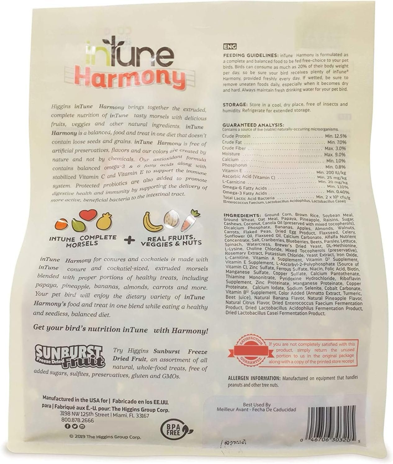 Overall, the Higgins 2 Pack of Intune Harmony Food is a great option for owners of small to medium-sized parrots, providing a balanced and nutritious diet that supports the overall health and well-being of your birds.