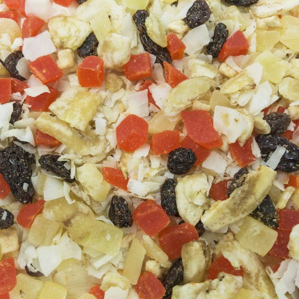 This has a good assortment of fruit for my sun conures, but this product is overpriced.