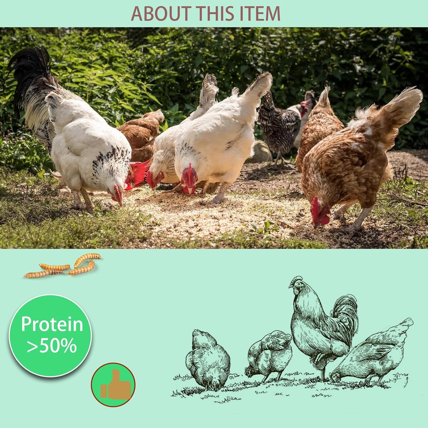 - Promotes Healthy Feather Growth: The nutrients in the mealworms support healthy feather growth in chickens and other birds.