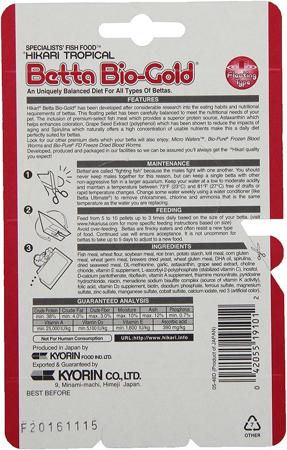 This scientifically developed diet is specifically designed for all types of bettas, providing them with the optimally balanced nutrition they require to thrive. The unique blend of ingredients in Hikari Betta Bio-Gold Baby Pellets is uniquely beneficial to bettas, promoting overall health and well-being.