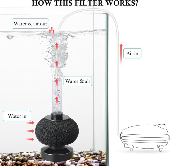 - Easy to Use: The filter comes with a 2.5in round sponge and a 3.2ft air tube, making it easy to set up and hide behind decorations.