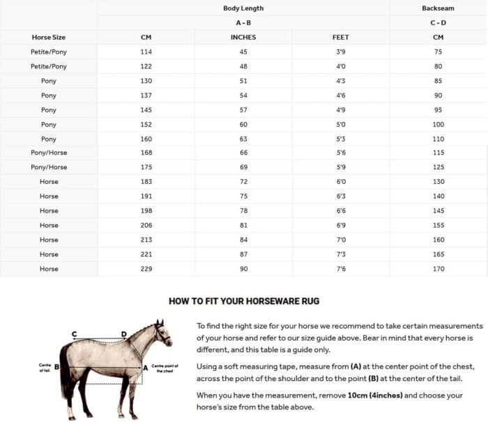 • Classic Fit: Designed with a classic original cut and featuring Horseware’s patented front leg arch, providing your horse with comfort and a full range of motion.