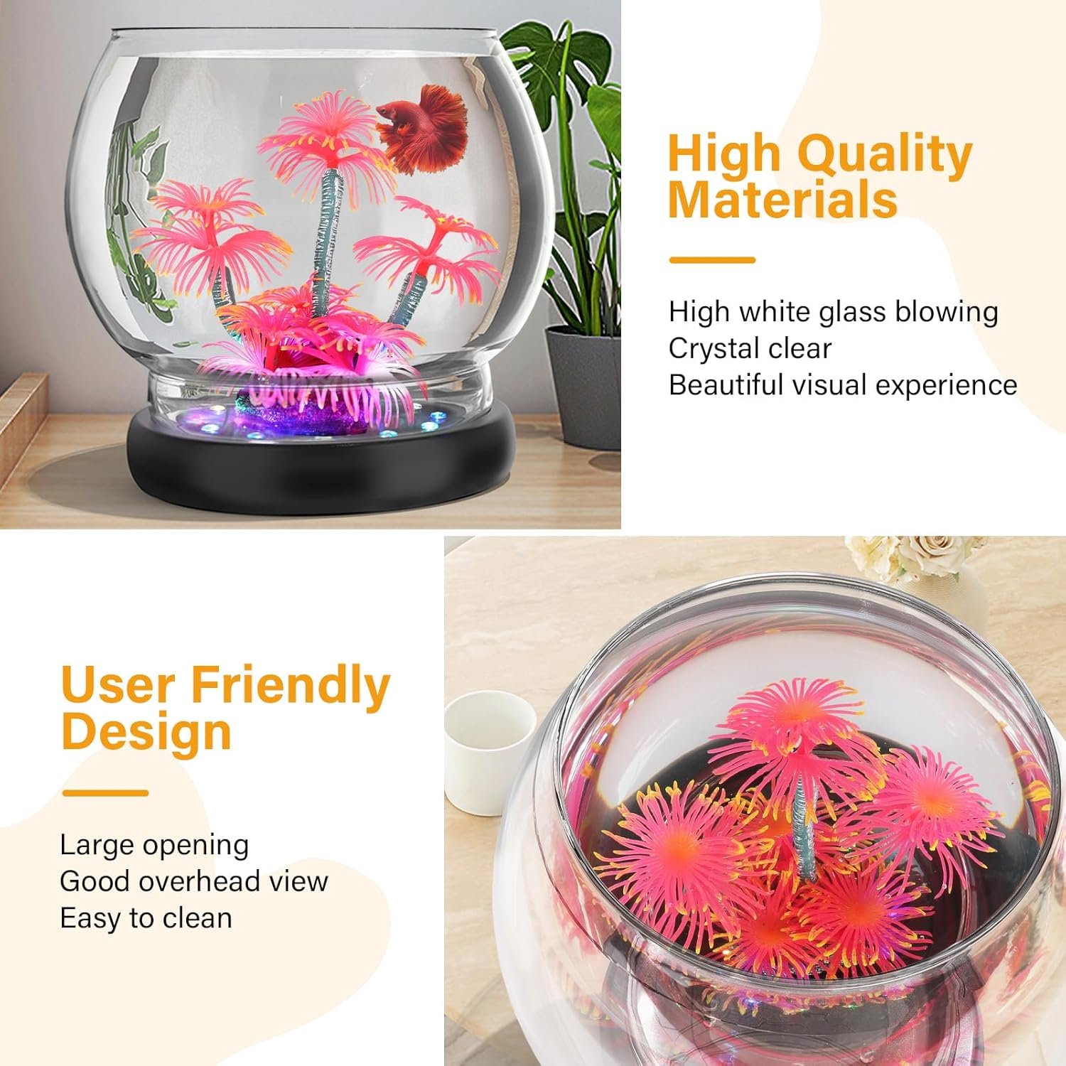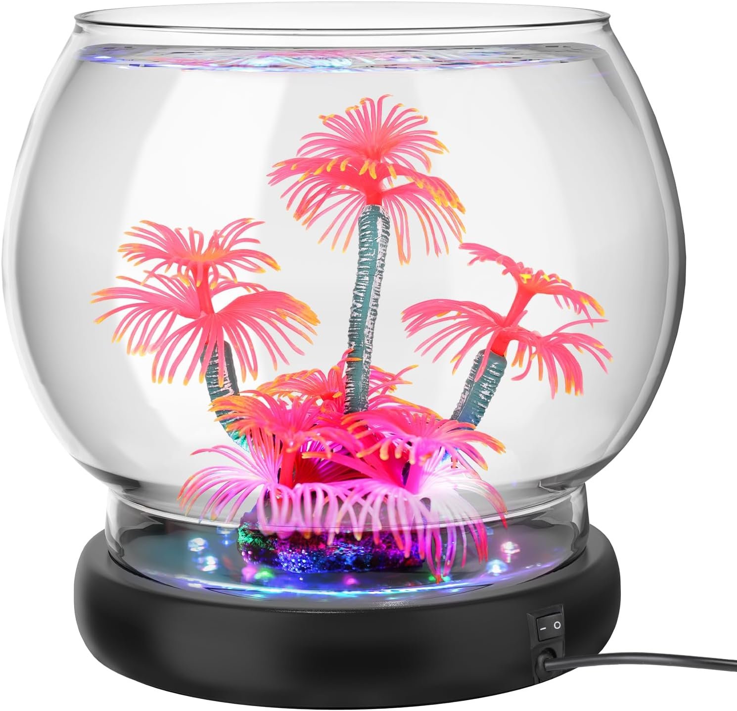 • Includes 1 glass fish bowl, 1 bionic decoration, and 1 base with LED lamp beads