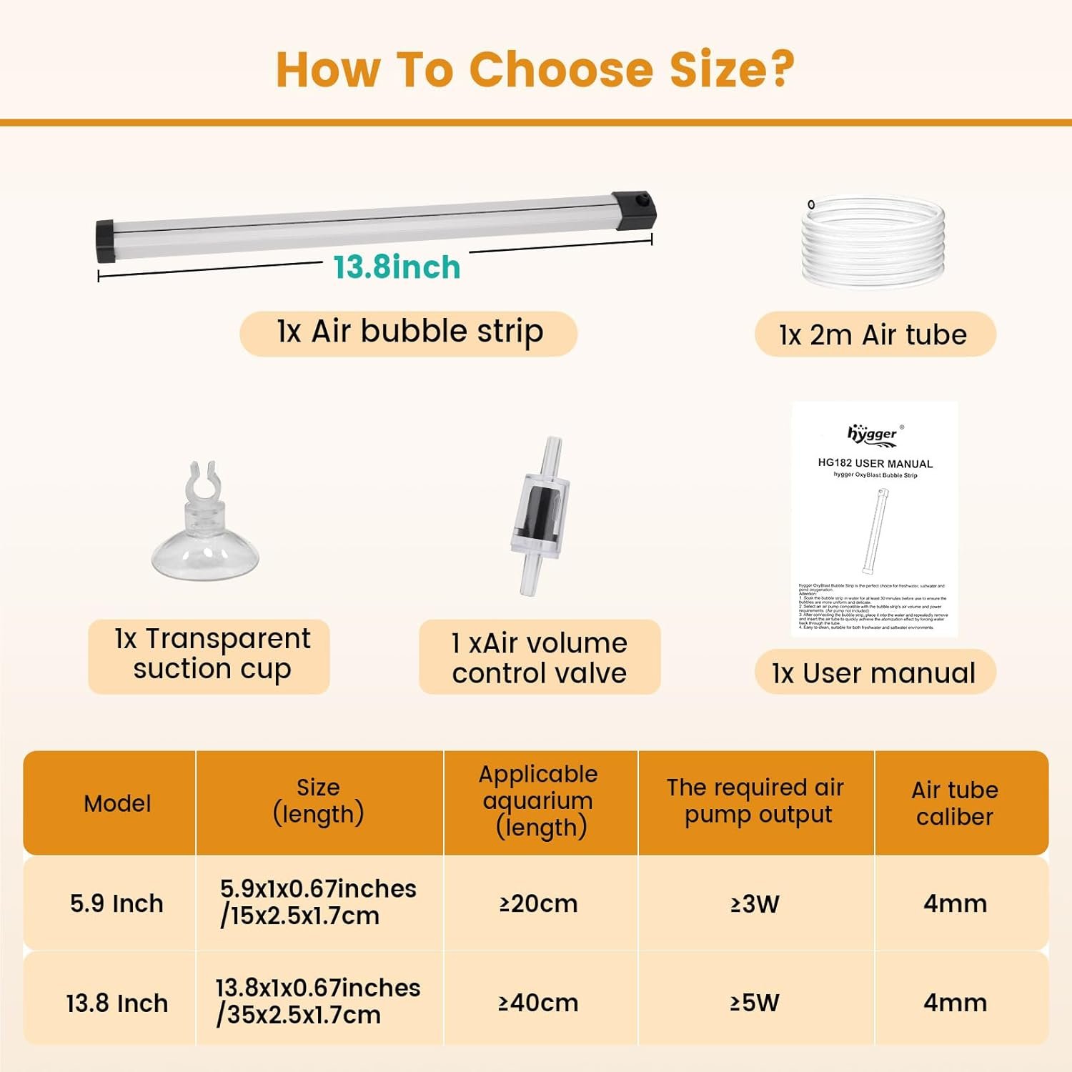 hygger Aquarium Bubble Strip, Nano Air Bubble Curtain Wall Aquarium Air Stone Kit, Quiet High Dissolved Oxygen Diffuser Fish Tank Bubbler Decorations for Freshwater Saltwater (13.8 Inch)