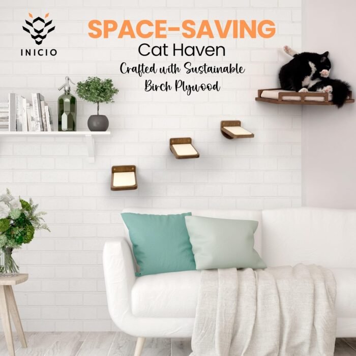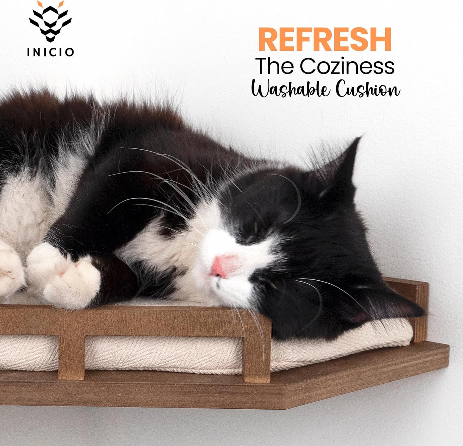 Each cat wall shelf comes with a soft, machine-washable cushion, ensuring a cozy resting spot for your cat. Made from premium birch, this cat shelf is designed for comfort and durability, making it an ideal addition to your cat wall climbing system. The cat steps for wall provide a simple and fun climbing adventure for your cat, making it easy to enhance your home with a stylish, functional cat space. This sleek cat wall mount blends seamlessly with your home’s decor, offering an elegant and elevated climbing space that provides both style and functionality.