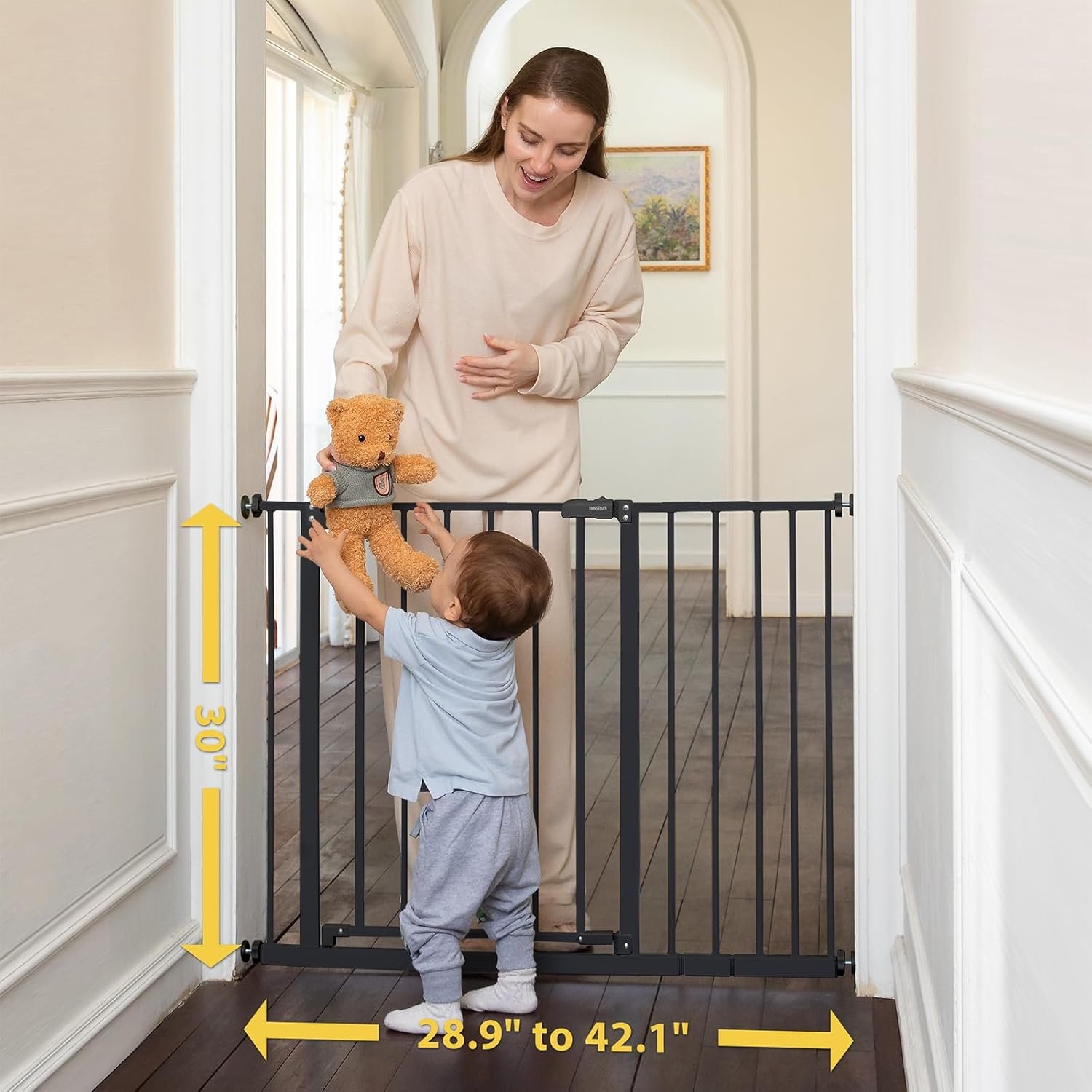 - Dual Lock System: A double-lock safety release prevents toddlers from opening the gate, keeping them safe from potential hazards.