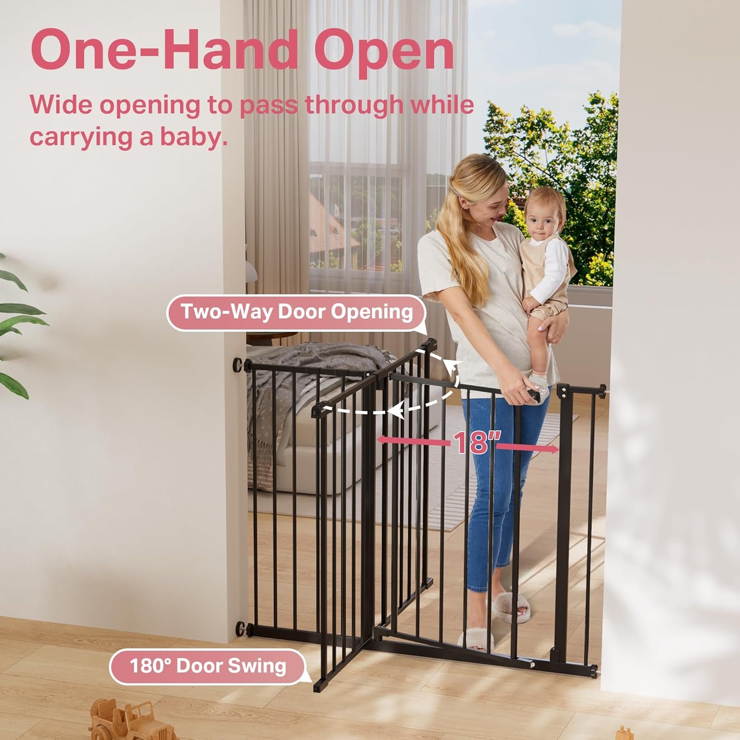 - One-Hand Usage: Gates can be opened 90 degrees on both sides with one hand, making it convenient for parents to carry babies, clothes, or food while passing through.