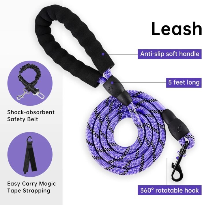 - Perfect Harness Set: Includes 1 professional dog leash & 1 retractable seatbelt & 1 storage strap, meeting various needs and ensuring the dog’s safety.