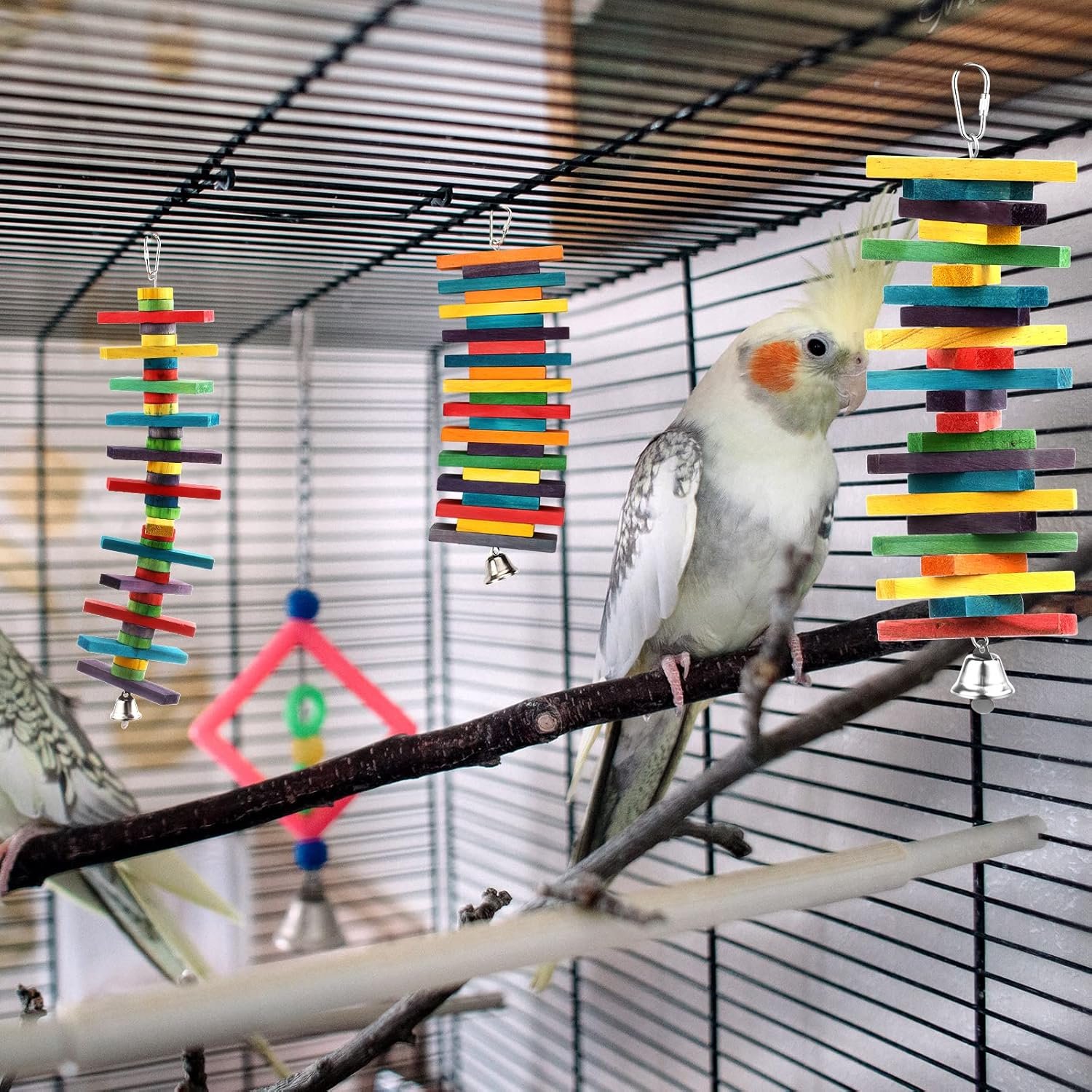 • Strong and reliable hardware: our bird chew toys adopt quality chains as hardware to connect colored wooden blocks.