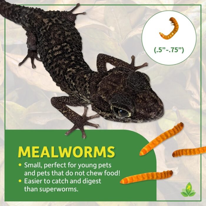 - Mealworms are great feeder insects for a variety of pets including Leopard Geckos, Crested Geckos, Fat Tail Geckos, Bearded Dragons, lizards, wild birds, and fish.