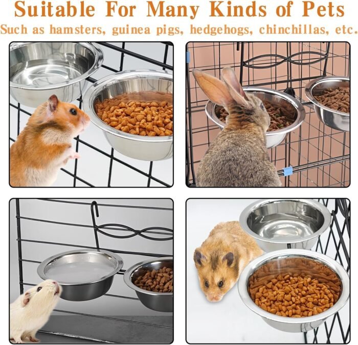 - Easy to clean; the bowls can be fixed on the cage, won’t be tipped over by pets, and are dishwasher safe or hand washable.