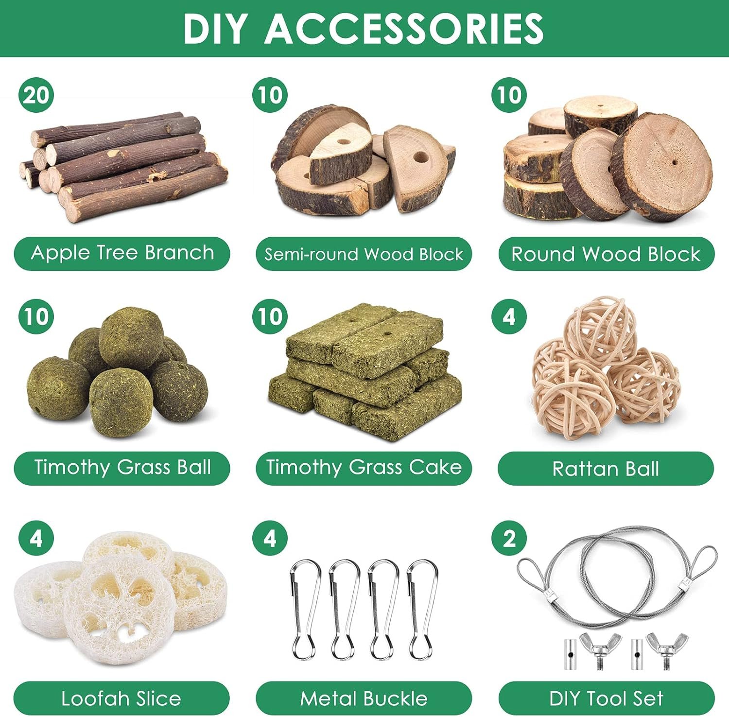 KATUMO Rabbit Chew Toys, 74 PCS DIY Hamster Chew Kit Bunny Teeth Care Molar Toys Ideal for Rabbit, Guinea Pig, Chinchilla, Hamster, Squirrel, Gerbils Etc Small Rodent Pets’ Teeth Grinding
