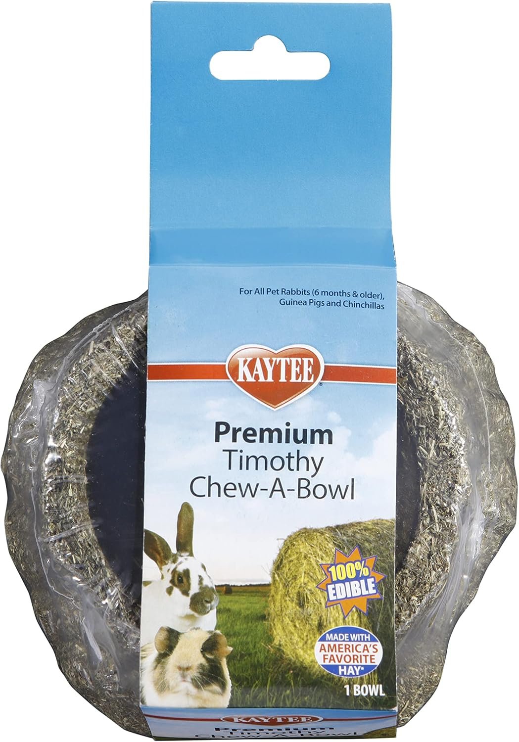 Kaytee Premium Timothy Chew-A-Bowl offers an edible solution to your everyday food dish, providing hours of enrichment and supporting dental health through encouraging chewing activity. Made with 100% edible America’s favorite Timothy Hay, this bowl is designed to be used with your favorite Kaytee food, but not as a water dish.