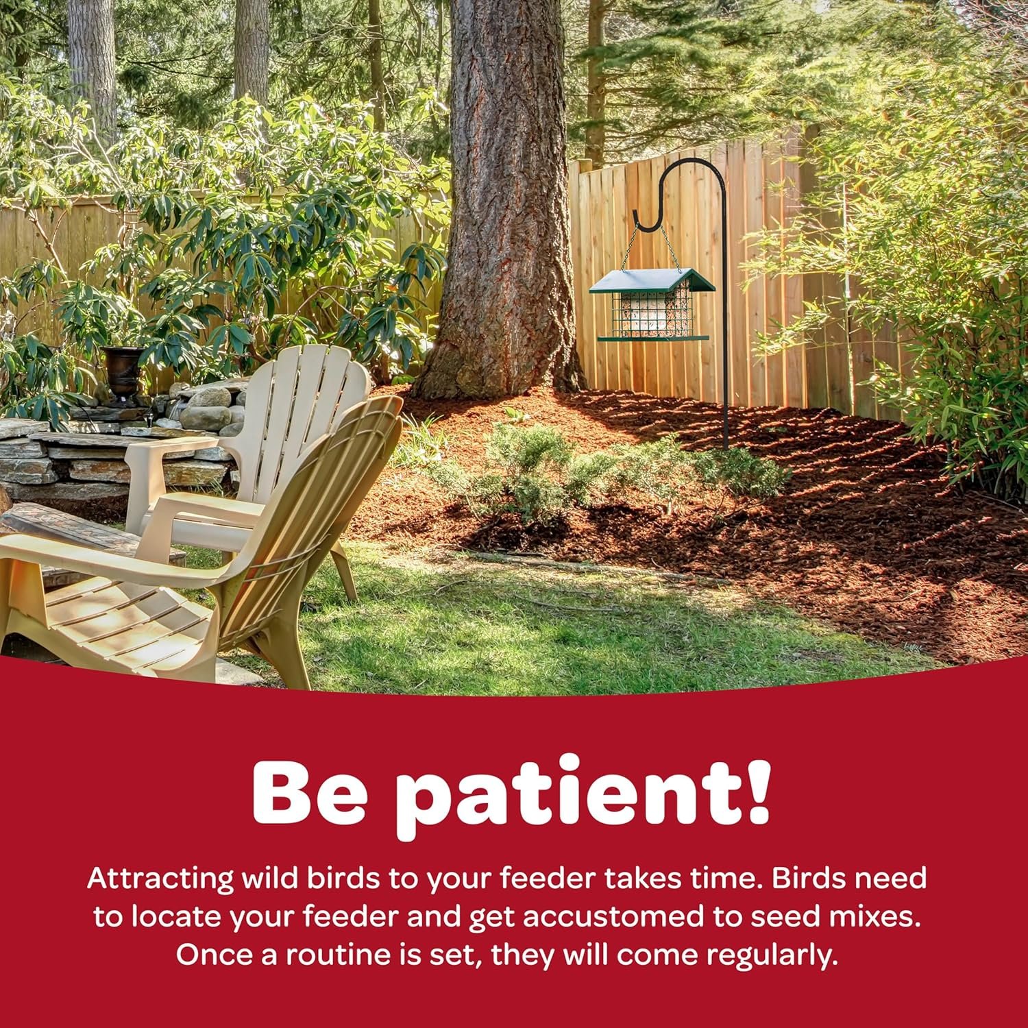 - Supports the local bird population by providing them with their preferred seed types