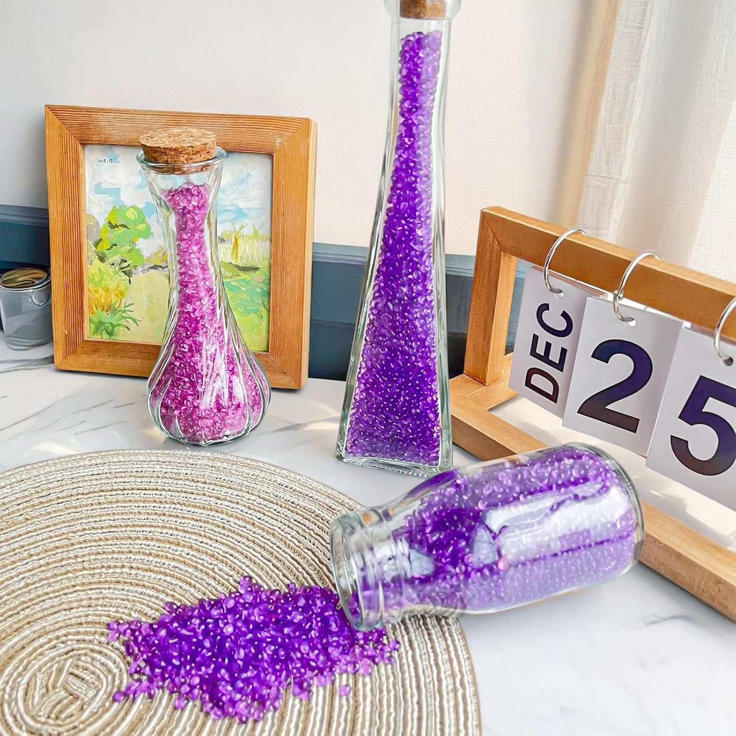 Our product features glass gemstones that resemble river gravels, with no dye or artificial coloring used, ensuring they never fade. The smooth edges of our glass pebbles ensure they won’t harm animals and plants, giving you peace of mind when using them. Please note that the glass pebbles are 0.93LB, which is heavy enough, but come in a small bag.