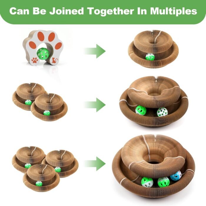 - Accordion cat toy: Our cat accordion is made of high-quality corrugated paper and uses strong magnets for adsorption, avoiding formaldehyde hazards brought by glue to cats.
