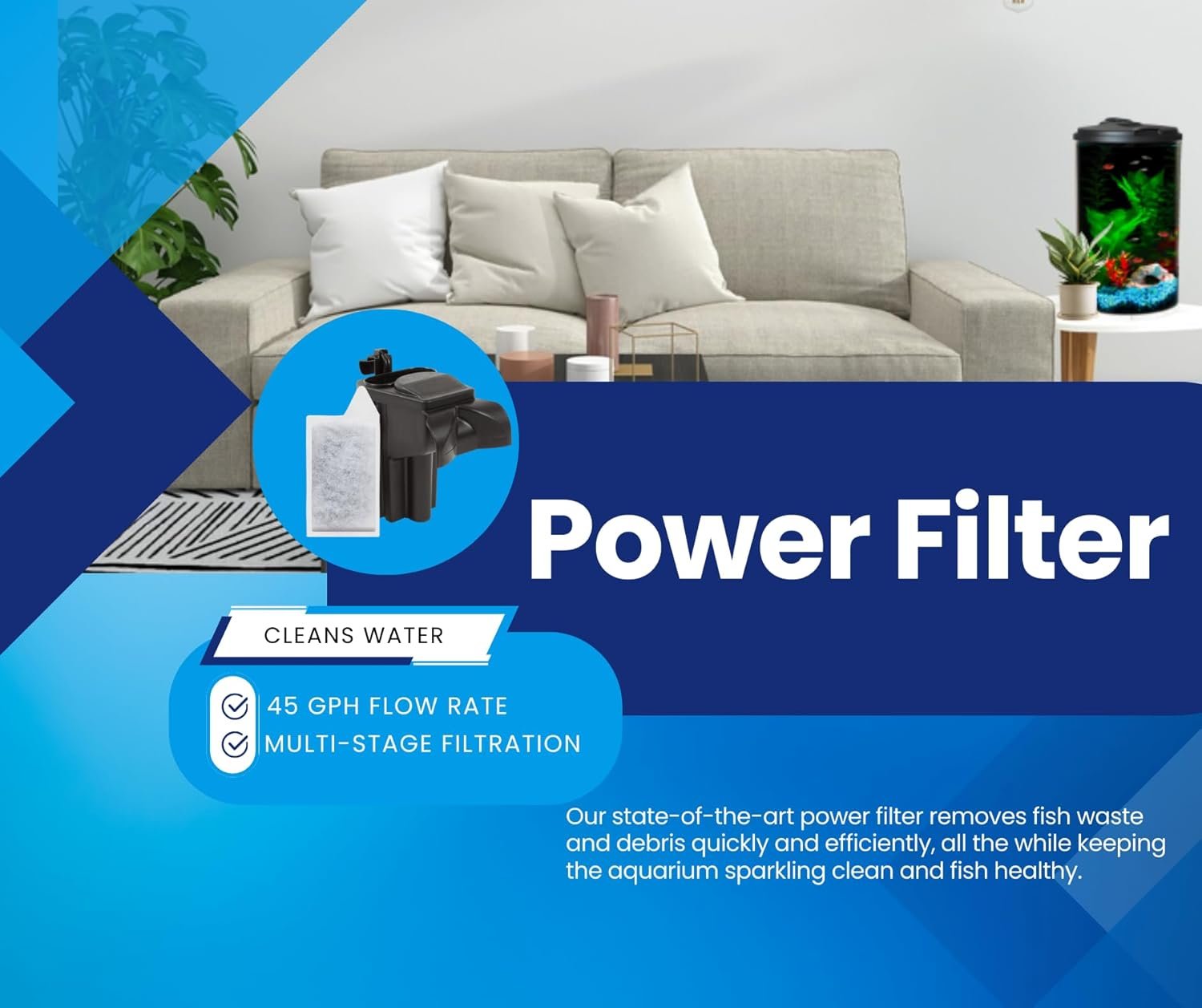 - Internal power filter that keeps the aquarium water optimal and fish healthy