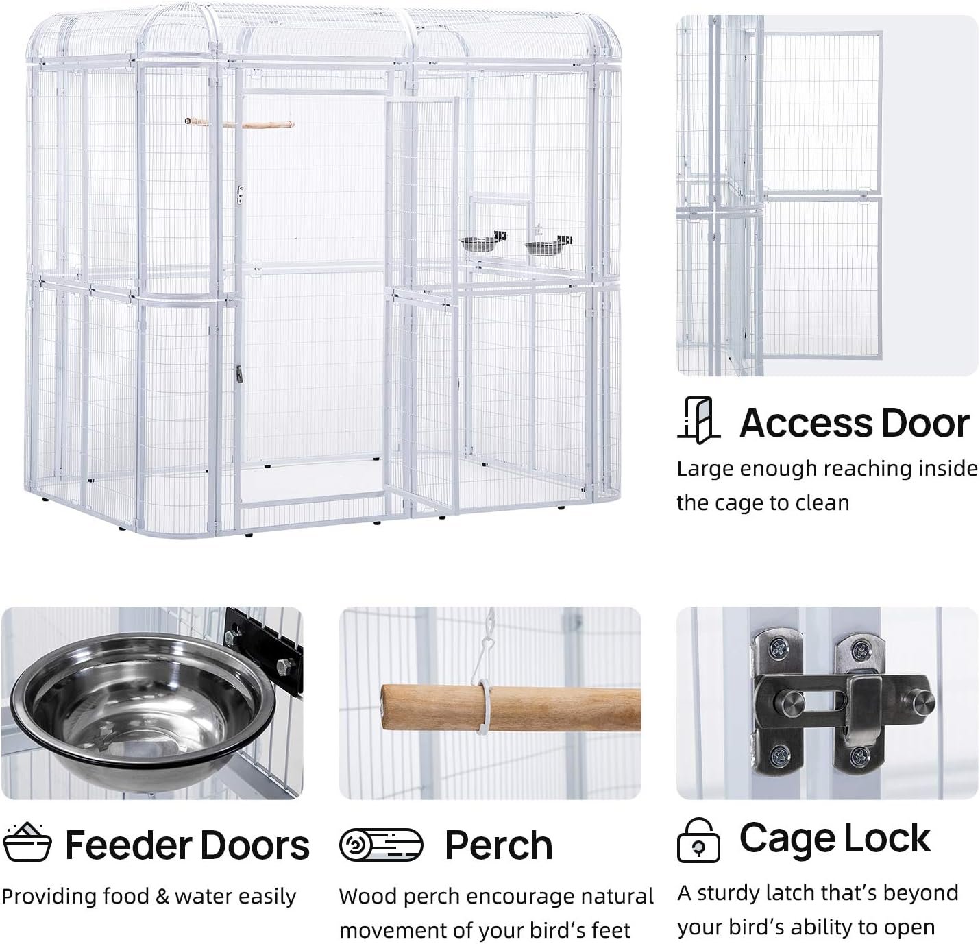 - Double Doors Cage: The feeder doors allow for easy provision of food and water, while the access doors provide a convenient way to clean the cage and interact with your birds.