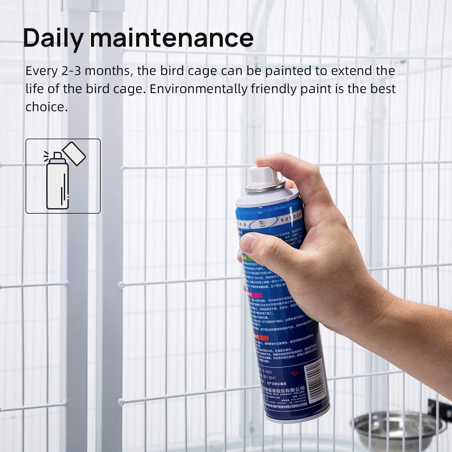 - Exposure to rain can cause rust, so a birdcage cover or indoor placement during rainy weather is recommended