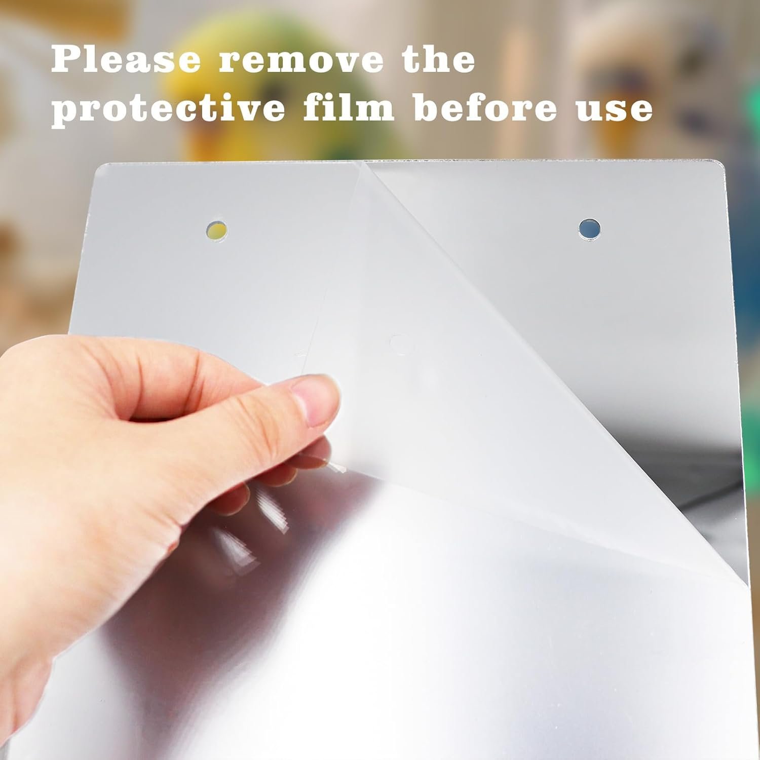 • Requires removal of protective film from the acrylic mirror surface before installation