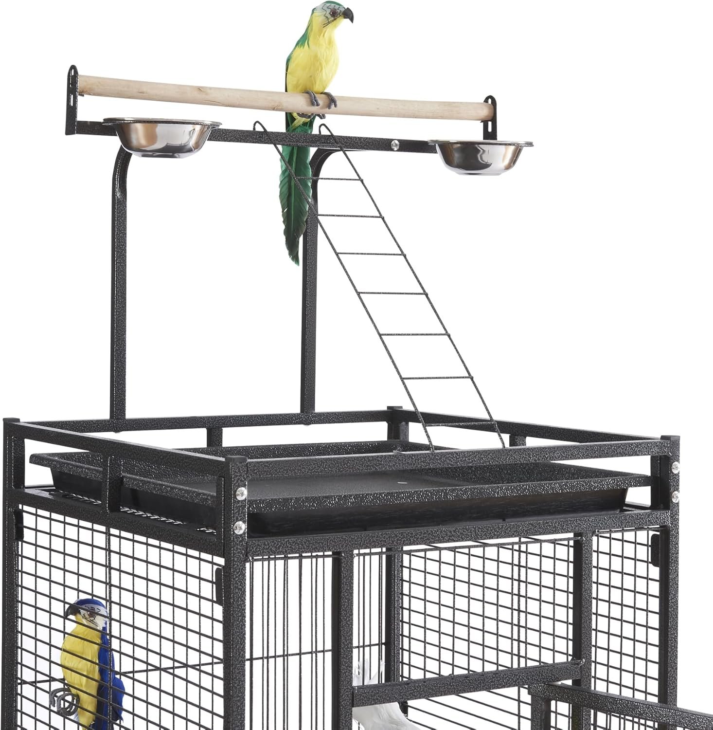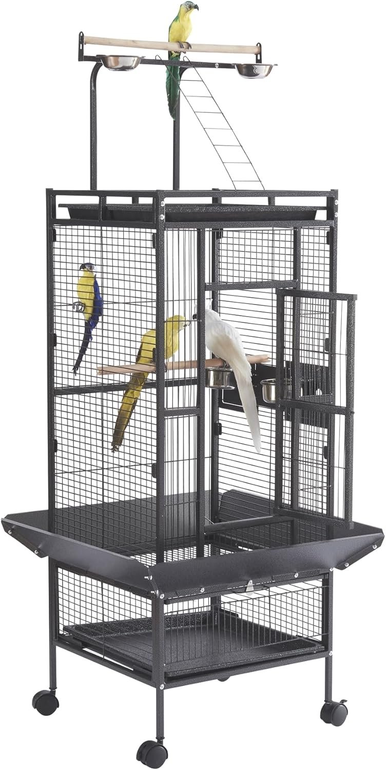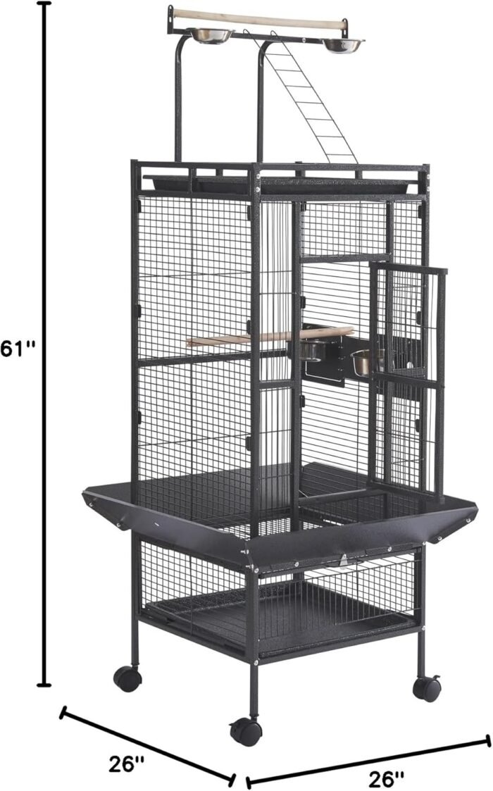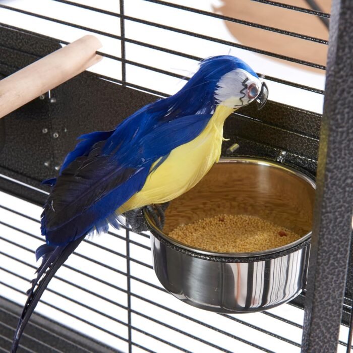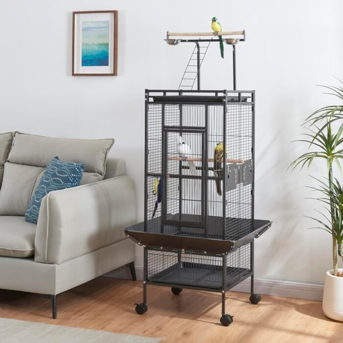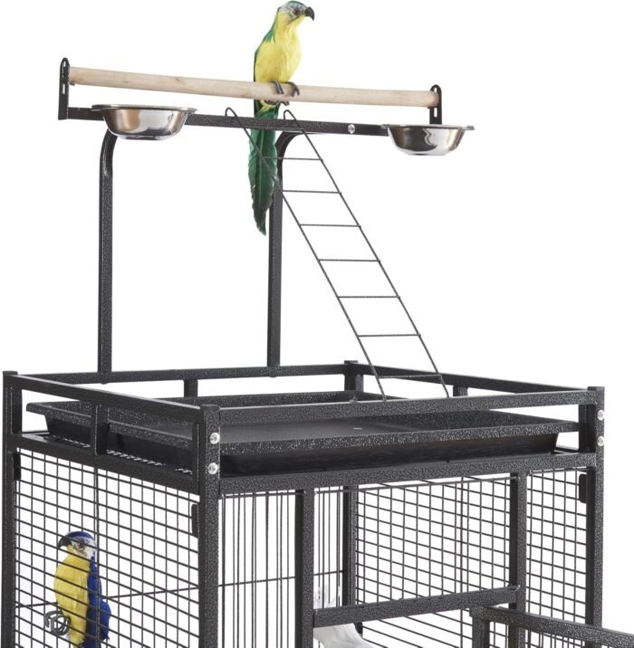 This birdcage is designed with pet parents in mind, featuring a waterproof finished metal cage and a bottom slide-out tray for easy cleaning. The pull-out grate at the bottom prevents birds from walking in their excrement, making maintenance a breeze.