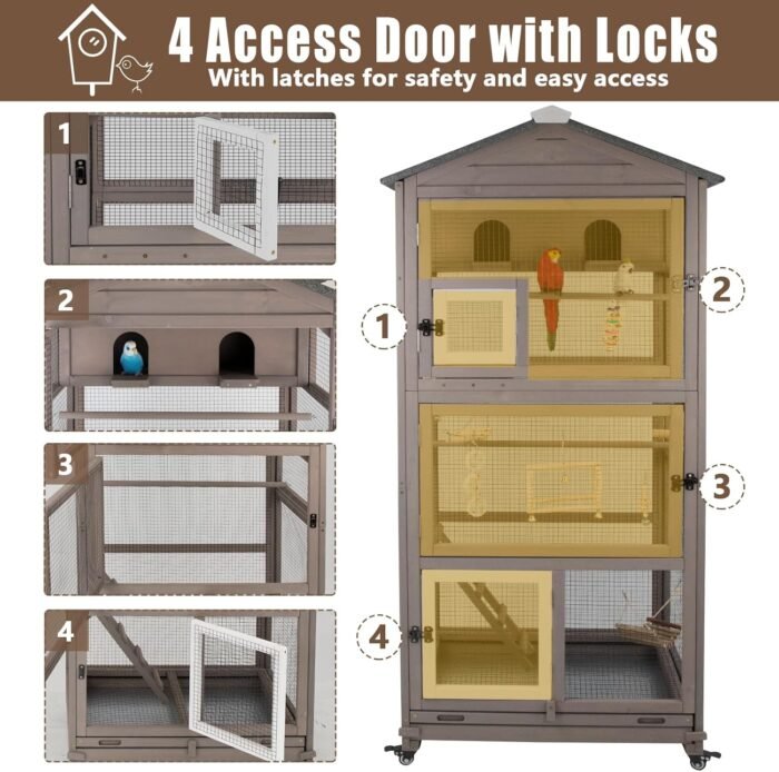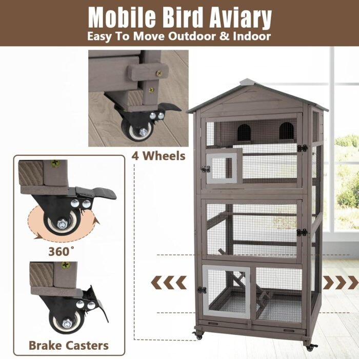 - Easy To Move: Four metal wheels allow for easy movement from indoors to outdoors, reducing energy expenditure for the birds.