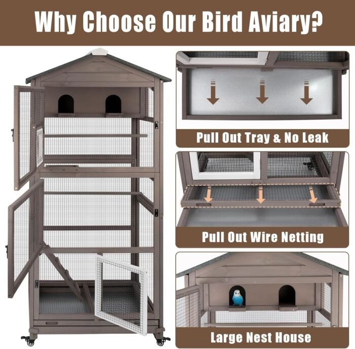 - Pull Out Tray & Wire Netting: Easy cleaning with a pull-out tray and a pull-out bottom wire mesh that keeps birds safe and prevents escape.