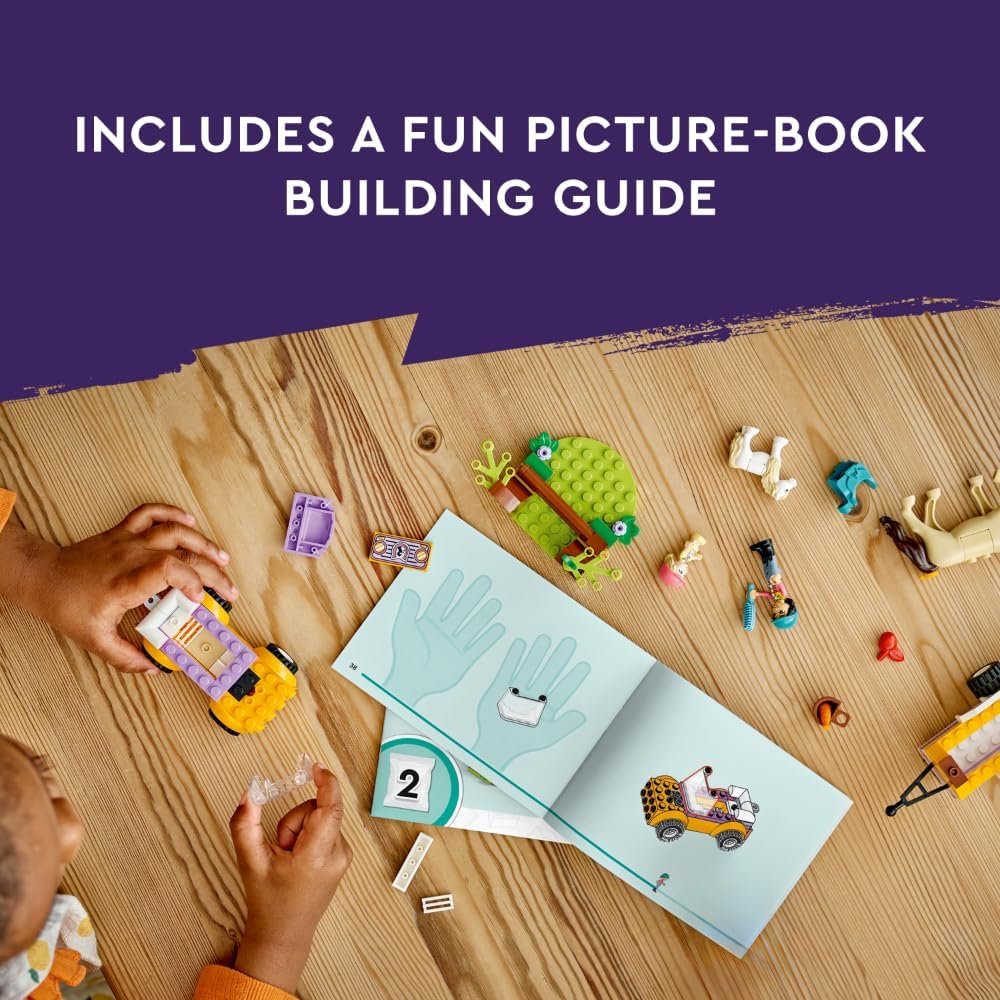 The LEGO Friends Horse and Pony Trailer (42634) playset toy is designed for girls, boys, and kids aged 4 and up, offering hours of creative play. This fun toy allows kids to build a car and trailer before creating adventures for friends Liann and Zoya. The set comes with a horse toy for Liann, a pony for Zoya, and various toy accessories to inspire role-play ideas.