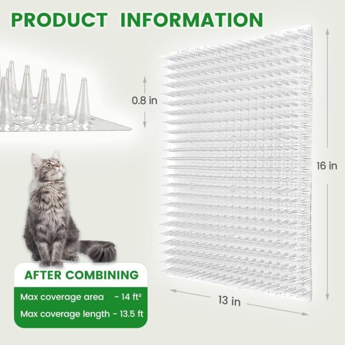 - Gentle yet Effective: The scat mat is made of non-toxic plastic with spikes that cause mild discomfort to pets without harming them.