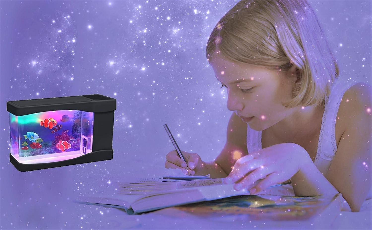 Lightahead® Artificial Mini Aquarium A Sensory Multi Colored LED Swimming Fish Tank with Bubbles