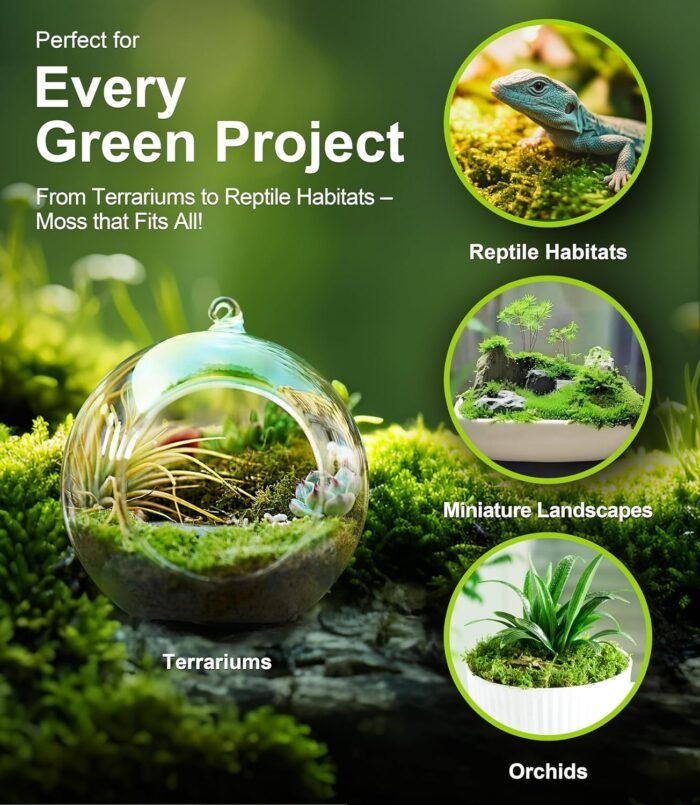 Yes, it’s 100% natural, living moss—not dyed, not preserved, not fake. It continues to grow and spread, perfect for terrariums, mini landscapes, reptile tanks, and creative plant decor.