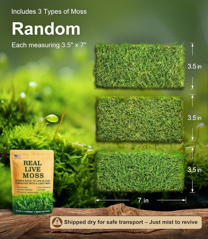 Home Reptiles & Amphibians Live Moss Variety Pack – 3-Pack Mixed Mosses (Each 3.5″ x 7″) – Real Sheet Moss for Terrariums, Bonsai, Reptile Tanks, Succulents & DIY Plant Crafts, Living Moss for Terrarium, Indoor planters