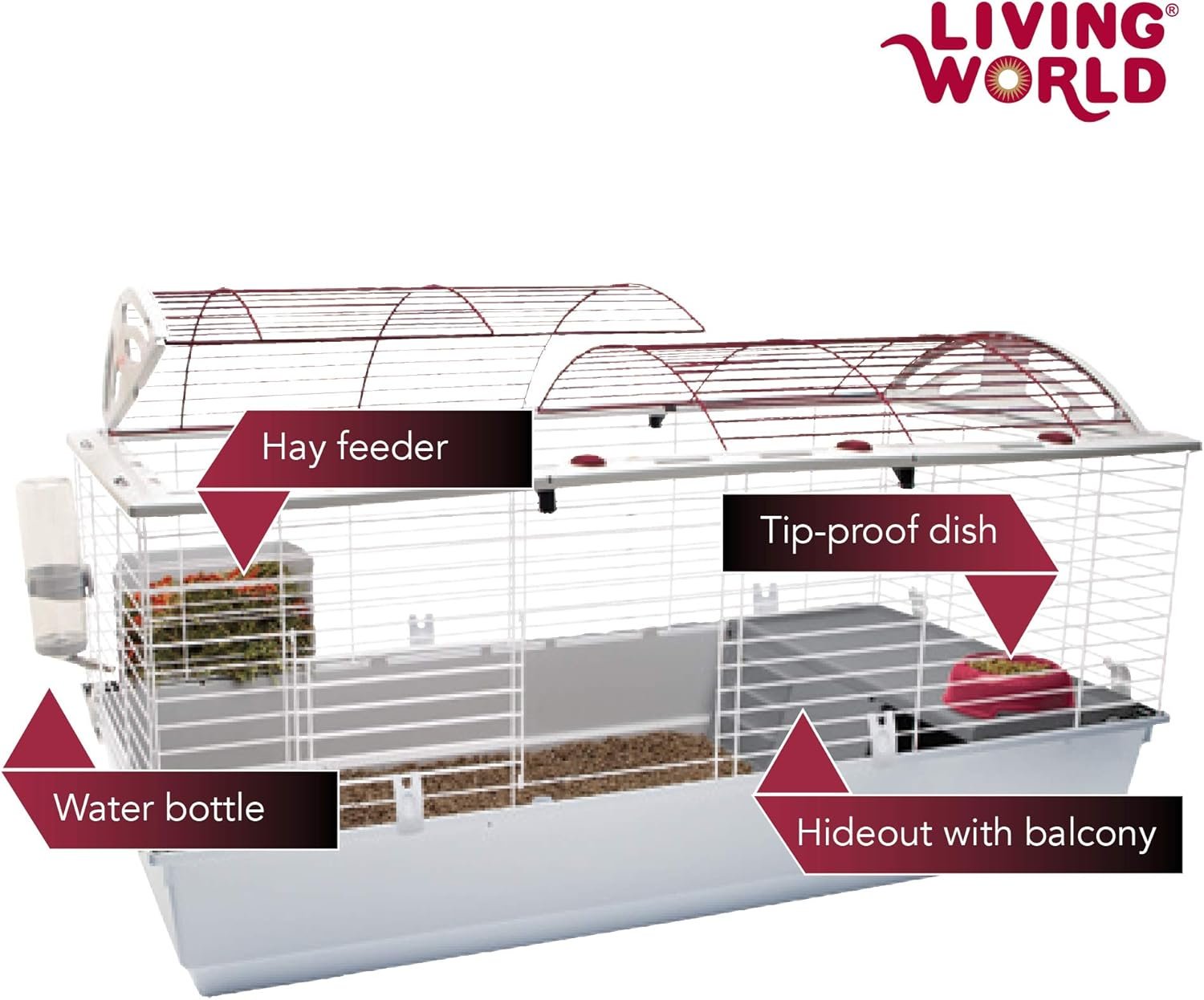 The Living World Deluxe Habitat is a versatile and spacious cage designed for safely housing small pets such as rabbits, guinea pigs, chinchillas, ferrets, and hamsters. This hybrid cage combines an upper wire frame with a plastic bottom base, providing a safe, well-ventilated, and comfortable environment for your pets.