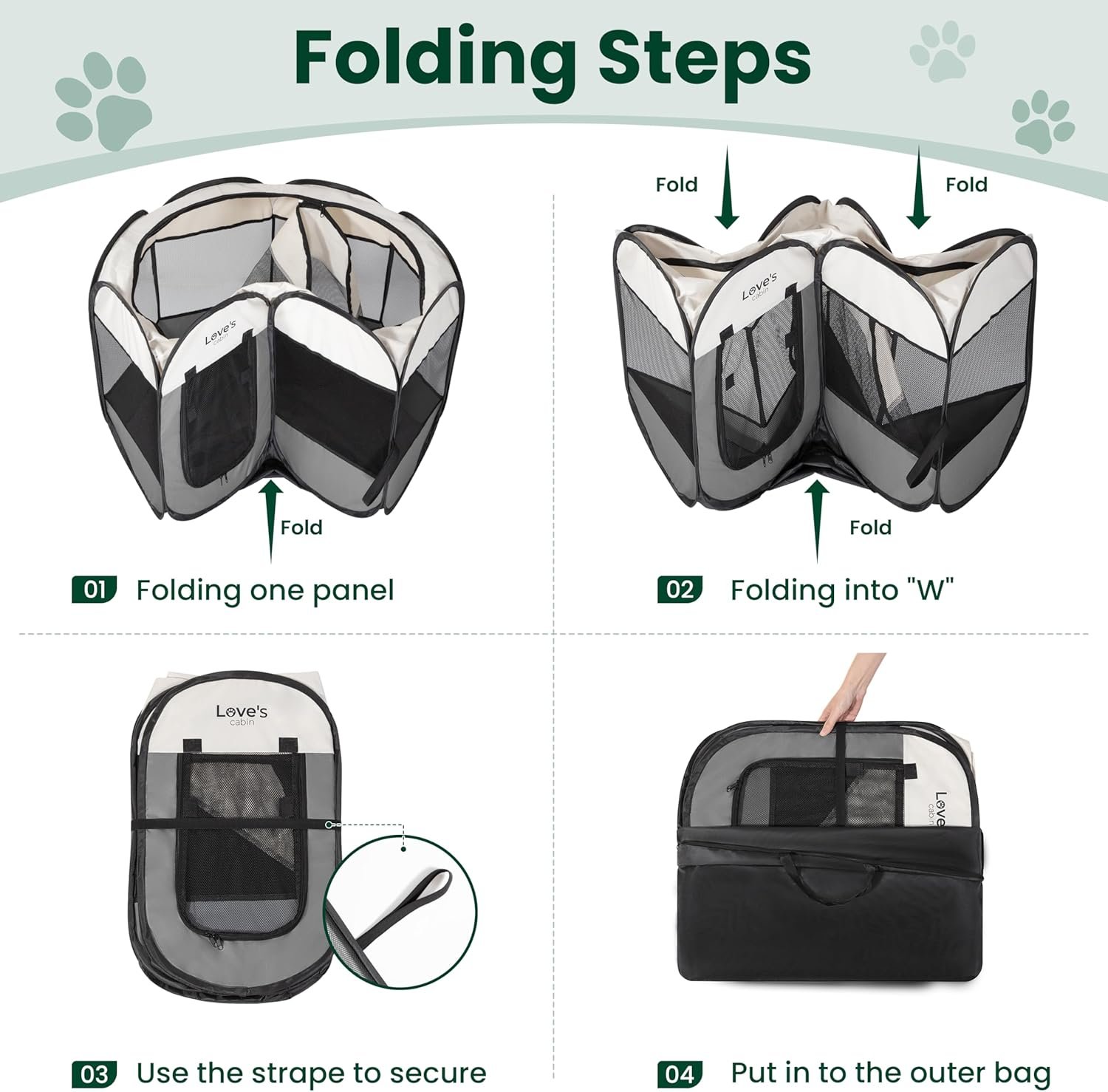 Love’s cabin Foldable and Portable Indoor Outdoor Exercise Pets Dog Playpen is a versatile and creative playpen designed to provide a spacious home and ultimate playtime experience for your pets. This portable playpen is not only suitable for camping and exploring the outdoors but can also be set up in your patio, lawn, garden, or any room of your house.