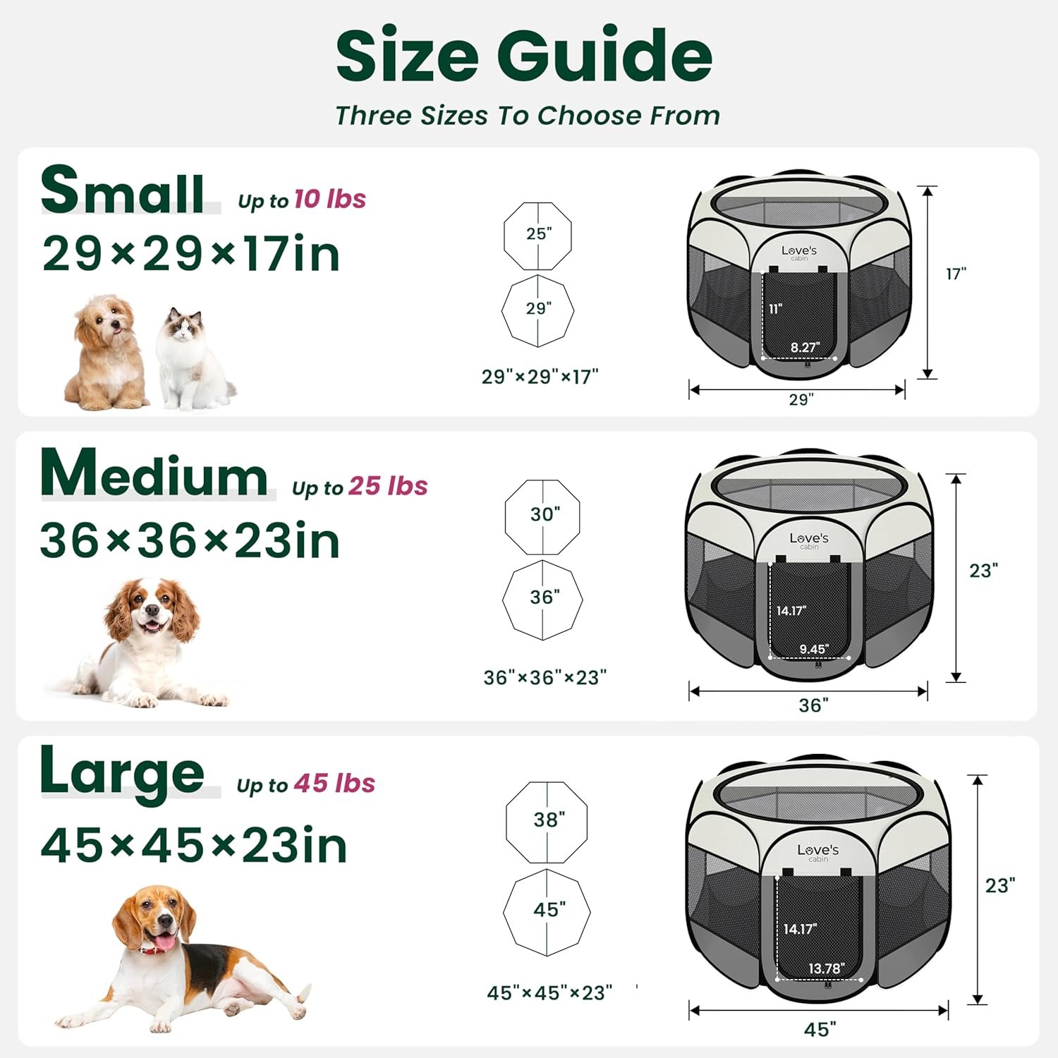- Suitable for pets up to 10 lbs (Small), 25 lbs (Medium), and 45 lbs (Large).
