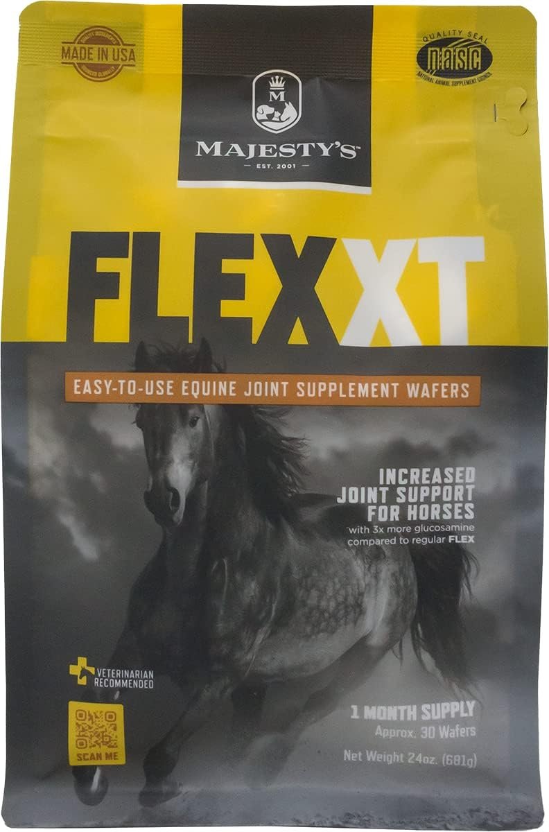Majesty’s Flex XT Wafers are designed to provide superior joint support with increased supplement levels for your horse. With their unique formula, ease of use, and cost-effectiveness, they offer a convenient solution for horse owners looking to ensure their horses receive the necessary nutrients without the hassle and waste associated with traditional powder and liquid supplements.