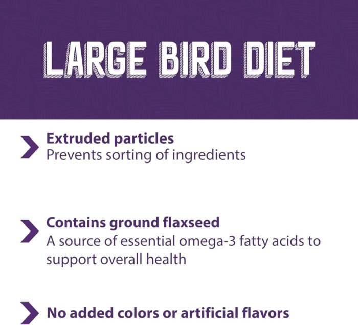 Bought for my blue and gold macaw. She absolutely loved the big pieces but wouldn’t eat the small pieces and this food is 90% small pieces. She especially didn’t like the little donut shaped pieces for whatever reason. Which is very disappointing and is a waste because she throws majority of the small pieces on the floor. I think this is great food and would have given 5 stars if at least 50% of the food had been big pieces for larger birds like mine. Then maybe she would have eaten more of it instead of throwing it on the floor. Loved this food but it’s not cost effective for us because she only eats the big pieces and there aren’t enough of the big pieces in it. **Update** I gave my bird the rest of the food to eat so as not to completely waste it and my bird decided she likes this food and now she won’t eat anything else. She’s eating big and small bits alike and not throwing any on the floor anymore! Absolutely amazing because she is super picky and usually doesn’t change her mind. Best bird food we’ve tried so far and I think this is going to be our go to from now on 🙂