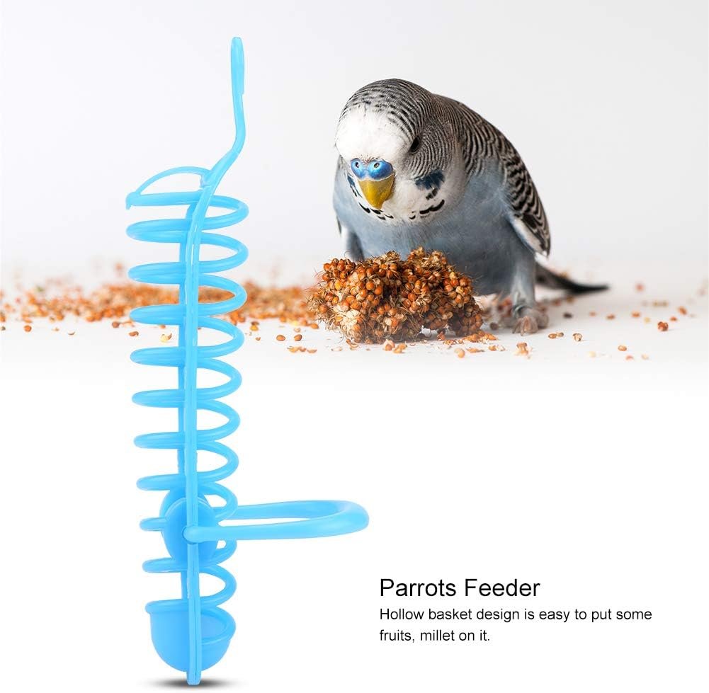 The bird feeder has a unique lock-on-top design to prevent birds from getting into the feeder, making it safe and secure. The plastic material is solid and durable, and the perch on the side provides a comfortable standing area for pets. The hollow basket design is perfect for putting fruits on, and the top hook design makes it easy to hang and keep organized.