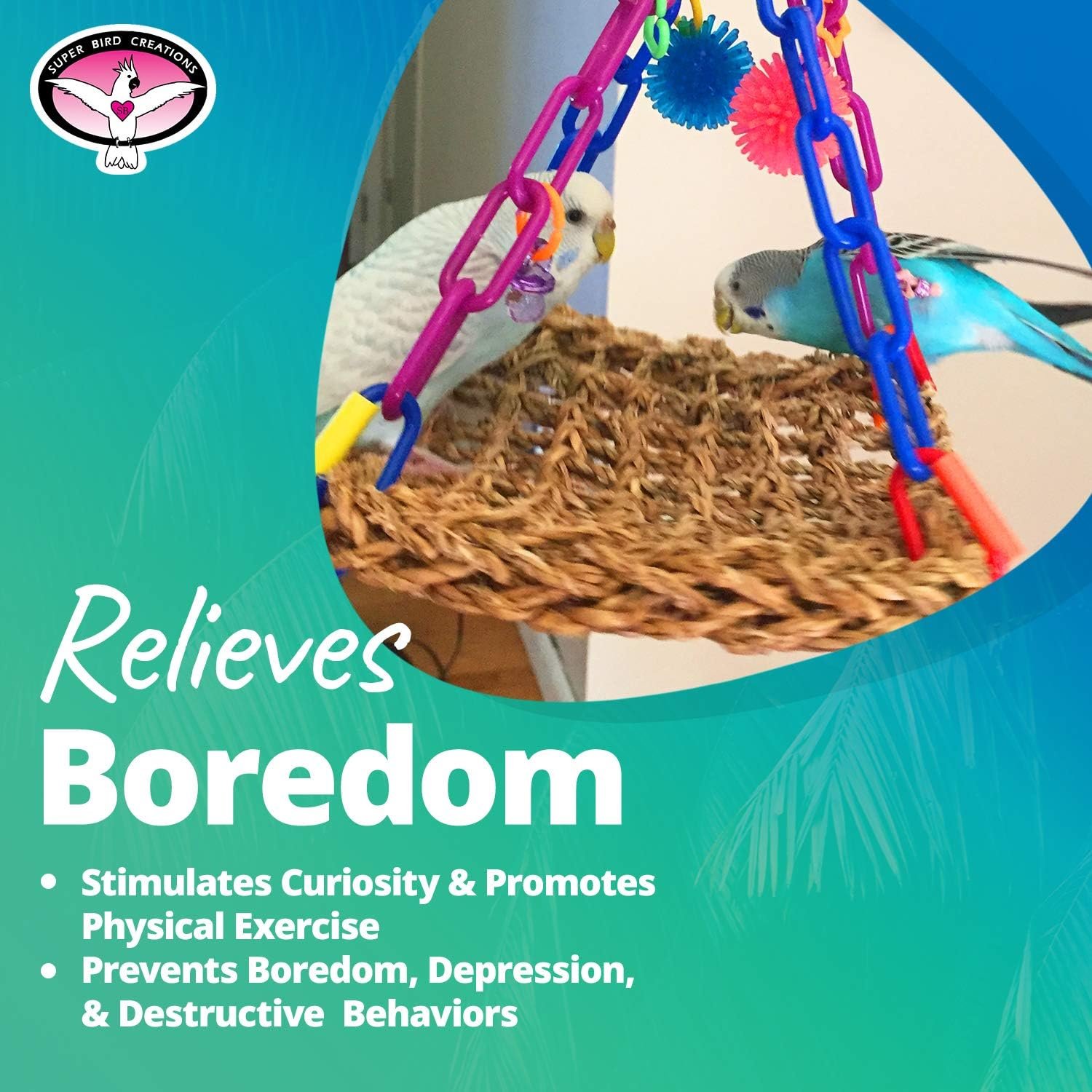 Super Bird Creations offers a range of bird toys specifically designed for small pet birds, including budgies, lovebirds, parakeets, parrotlets, small conures, and cockatiels. Our toys are designed to address the instinctual needs of pet birds, providing them with the stimulation and exercise they need to stay happy and healthy.