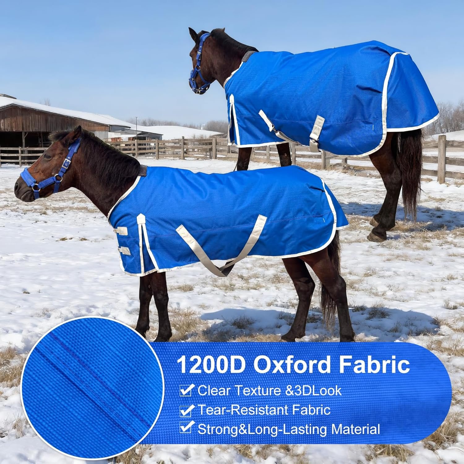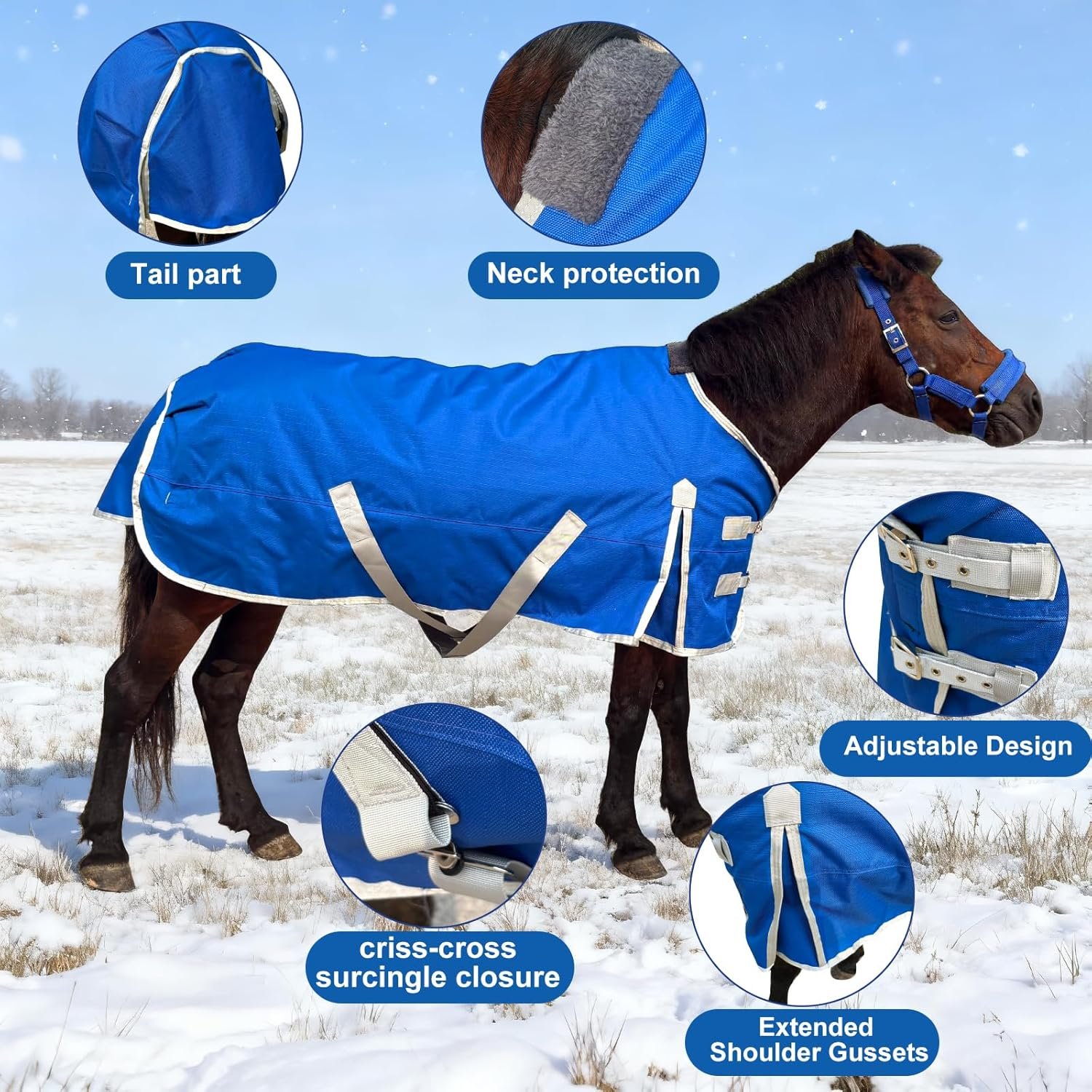 This premium horse blanket is designed to provide superior protection and comfort for your mini horse, pony, or small foal. Made with durable 1200D fabric, it offers excellent water resistance and long-lasting protection against the elements.