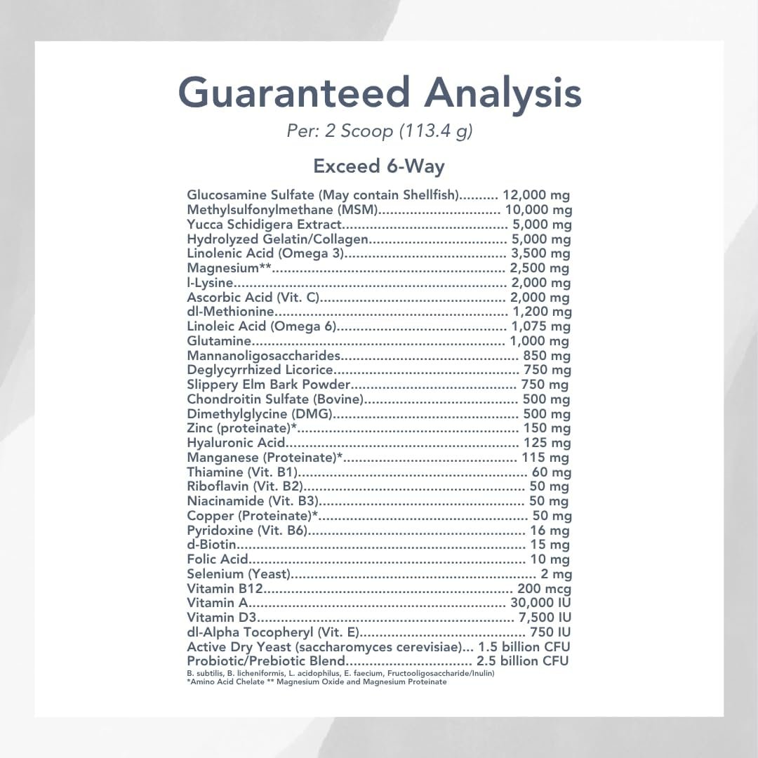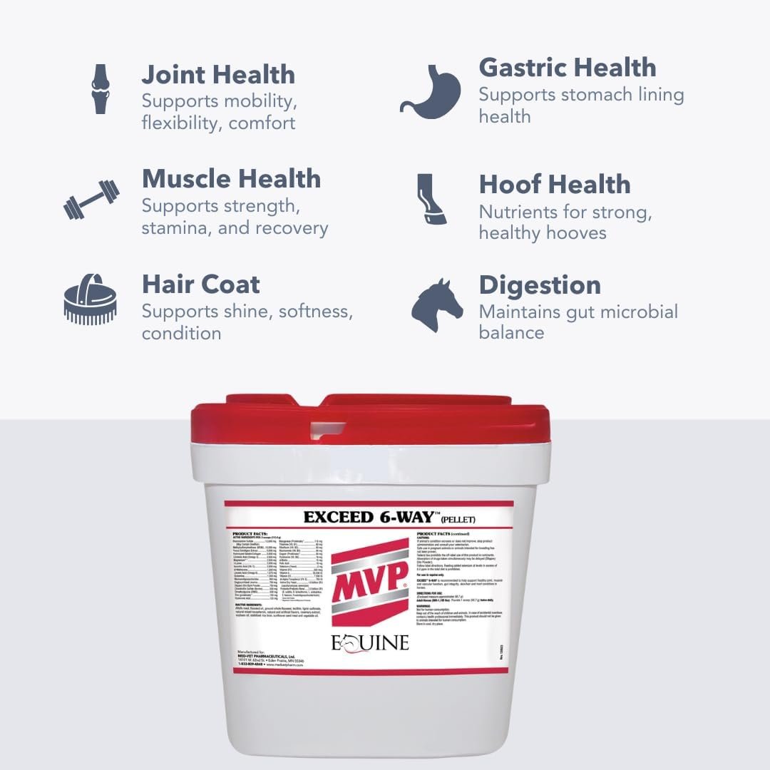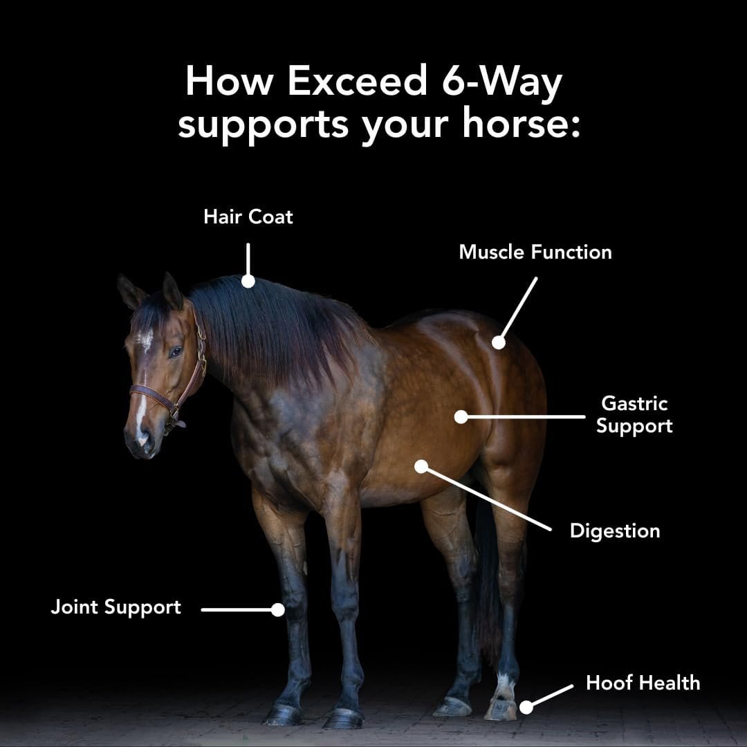Exceed 6-Way supports joint, muscle, hoof, gastric, hair coat, and digestive health in one easy, research-backed formula.