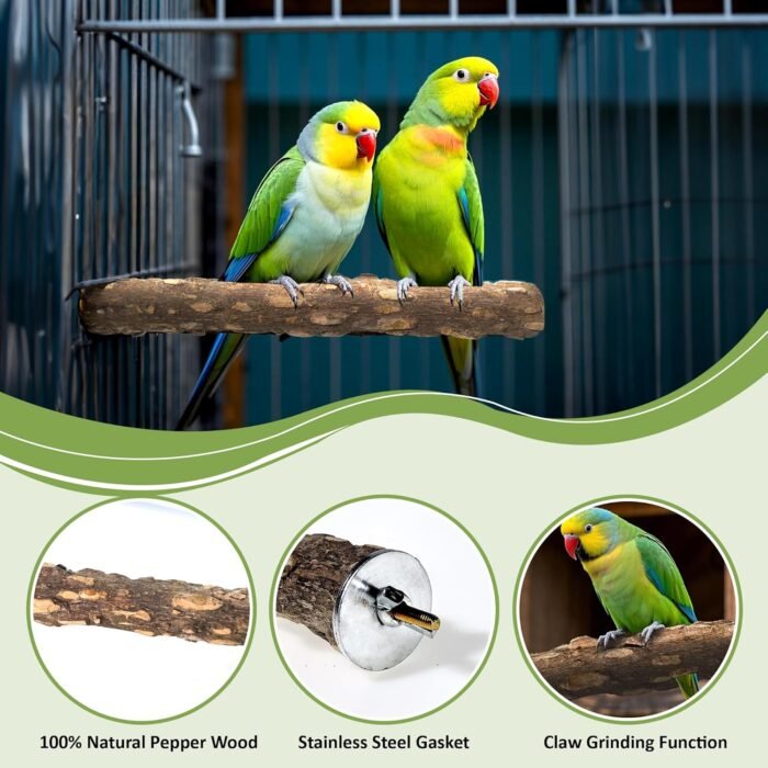 • NATURAL WOODEN PERCHES: Made from natural grapevine wood, pepperwood, and applewood.